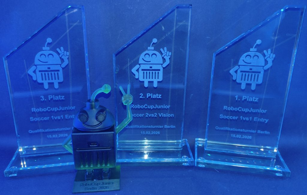 Nun waren die zwei Tage auch schon vorbei, und die Siegerehrung stand an. Als diese anfing, ging es direkt mit der Liga Entry los. Alle waren sehr aufgeregt, da noch nicht klar war, welchen Platz die „No Name Penguins“ nun schlussendlich hatten. Zur großen Freude wurde der dritte Platz für Luna und Emily verkündet. Den ersten Platz machten Thalia und Justus als „Penguins on Wheels“, worüber alle sehr erfreut waren, da sie nicht nur einen weiteren Titel für unseren Makerspace gewinnen konnten, sondern als Neulinge direkt gekocht haben. Bei 2vs2 Vision kam das Team „The Robo Penguins“ auf den zweiten Platz, somit haben sich alle drei Teams für die German Open qualifizieren können. Nach der Siegerehrung haben wir ein bisschen gefeiert und bereiten uns jetzt auf das nächste Turnier vor, welches schon am 10.03.2026 beginnt.